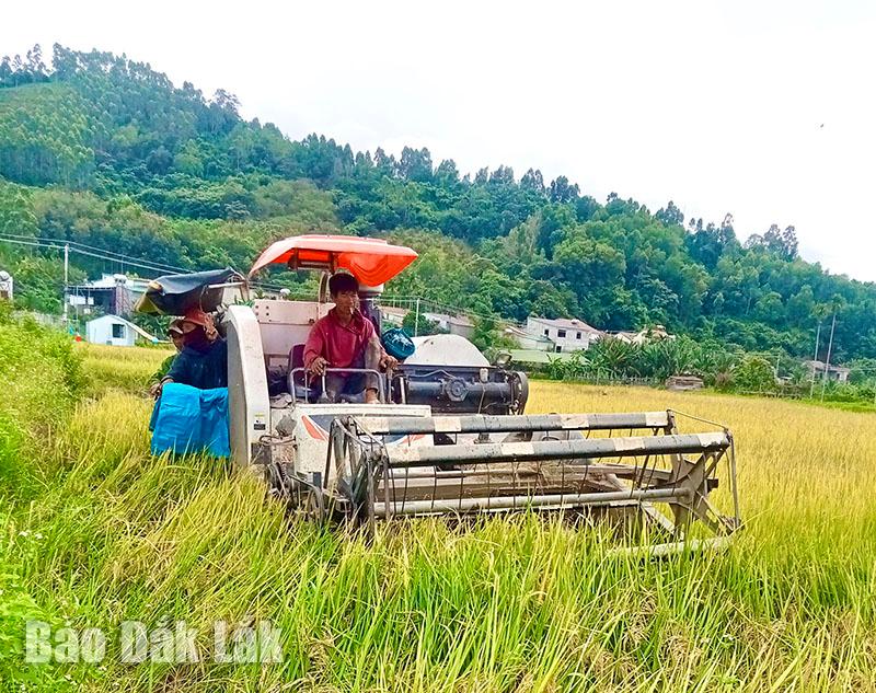Tổ hợp tác sản xuất lúa Nam Bình (xã Yang Reh, huyện Krông Bông) thu hoạch lúa