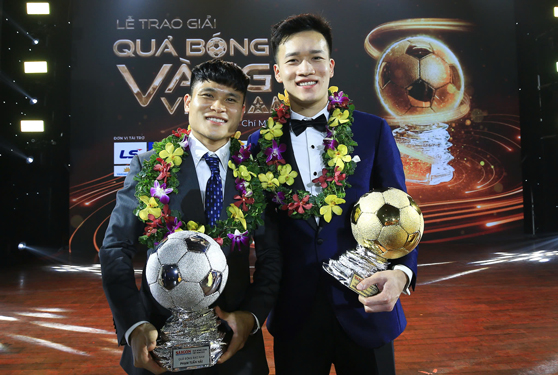 Nguyễn Hoàng Đức (phải) Quả bóng vàng nam Việt Nam 2023. (Ảnh: QUỐC AN)