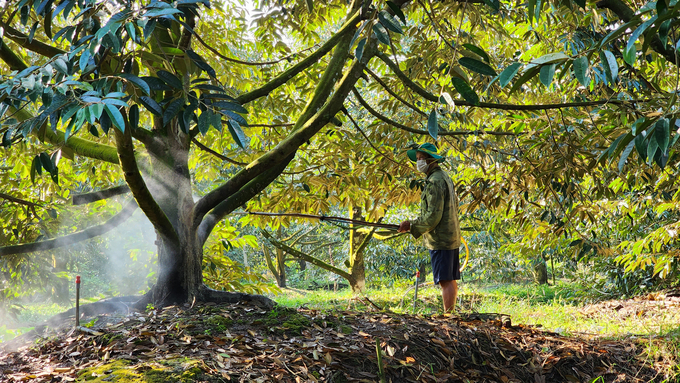 Việc lạm dụng phân bón, thuốc bảo vệ thực vật là một trong những nguyên nhân khiến sinh vật gây hại trên sầu riêng bùng phát. Ảnh: Kim Anh.