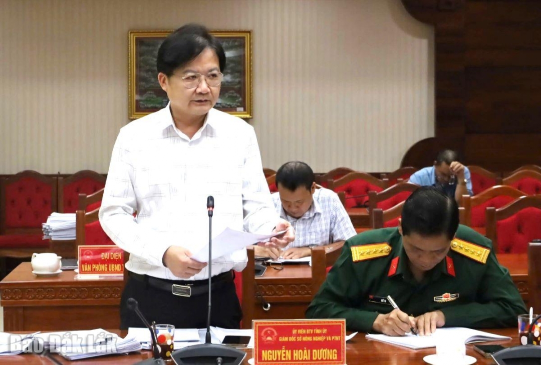 Ủy viên Ban Thường vụ Tỉnh ủy, Giám đốc Sở Nông nghiệp và Phát triển nông thôn Nguyễn Hoài Dương phát biểu tại phiên họp
