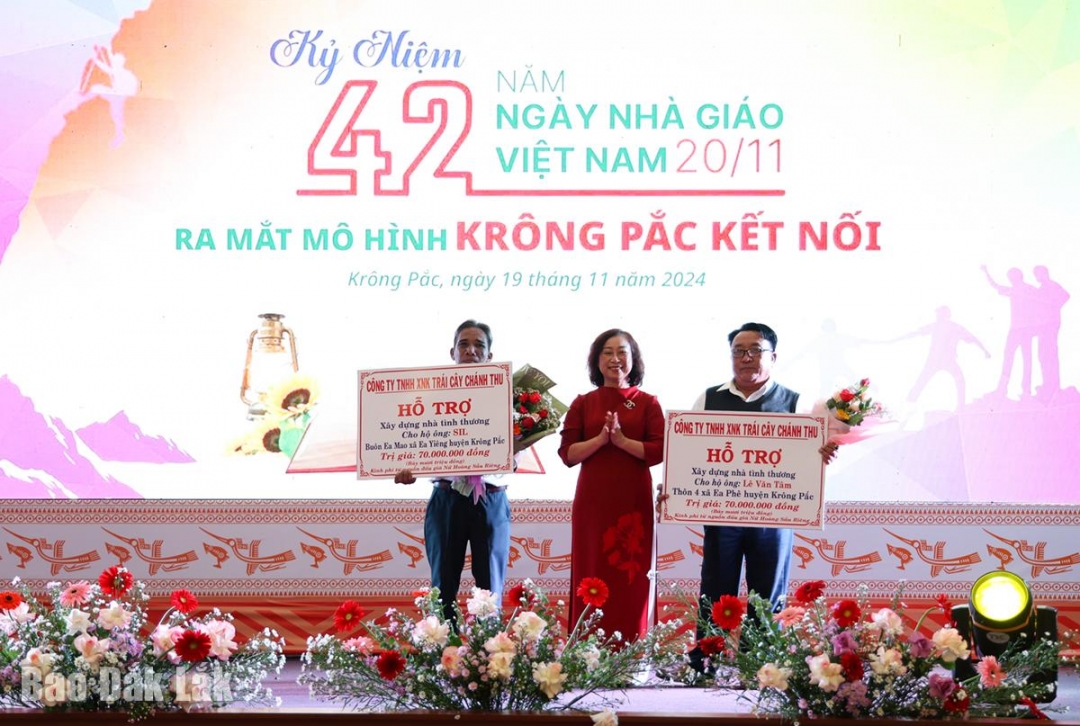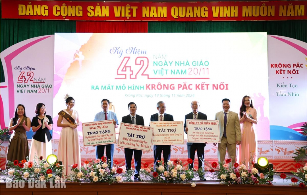 Thông qua mô hình, nhiều tổ chức, cá nhân đã có những hành động ý nghĩa để tri ân các thầy, cô giáo, chung tay chăm lo cho sự nghiệp trồng người. Trong đó, Công ty Cổ phần Tập đoàn xuất nhập khẩu trái cây Chánh Thu đã hỗ trợ xây dựng 2 căn nhà cho giáo viên khó khăn về nhà ở của Trường Tiểu học Đinh Núp và Trường THCS Ea Phê với trị giá 70 triệu đồng/căn; Công ty TNHH Thương mại dịch vụ du lịch Happy Book tài trợ 1 tỷ đồng xây dựng phòng học; Công ty TNHH Đầu tư thương mại và dịch vụ du lịch Ban Mê Travel đã trao tặng 10 xe đạp cho học sinh có hoàn cảnh khó khăn; Công ty TNHH Milsgate đã tài trợ 2 thư viện trường học; Công ty cổ phần MISA tặng 200 chữ ký số và 10 gói phần mềm hóa đơn trị giá 250 triệu đồng…