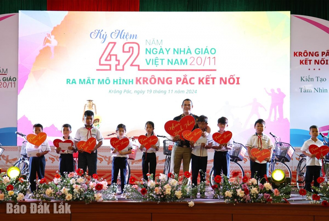 Sáng 19/11, trong chương trình gặp mặt kỷ niệm 42 năm Ngày Nhà giáo Việt Nam (20/11/1982 – 20/11/2024), UBND huyện Krông Pắc đã ra mắt mô hình “Krông Pắc kết nối” với ý nghĩa cao đẹp nhằm kết nối các thế hệ học sinh,...