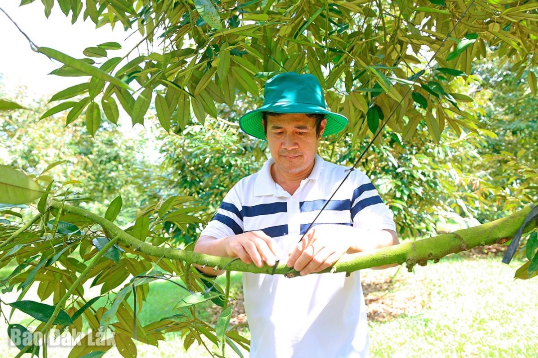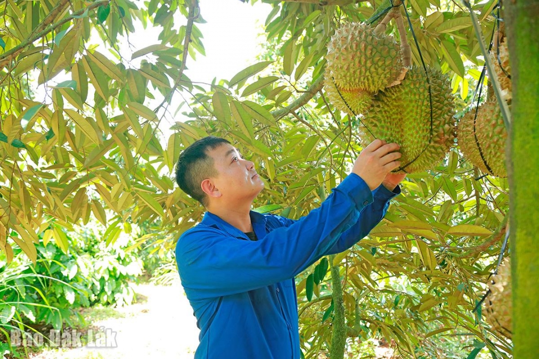 Tương tự, anh Vũ Duy Khương (thôn Hòa Bình, xã Ea Hồ) cũng có hơn 200 cây sầu riêng trồng xen canh trong vườn cà phê 2 ha. Vườn cây được anh chăm sóc theo tiêu chuẩn VietGAP. Anh còn thiết kế hệ thống tưới nước tự động, trồng cỏ dưới tán cây để giữ độ ẩm cho vườn cây. Hiện vườn cây mới cho thu hoạch 50%, mùa vụ vừa qua, gia đình anh thu được 10 tấn quả, bán được gần 700 triệu đồng. “Để đáp ứng nhu cầu ngày càng cao của thị trường, tôi sẽ học hỏi thêm kiến thức để trồng và chăm sóc vườn cây bảo đảm yêu cầu xuất khẩu”, anh Khương cho hay.