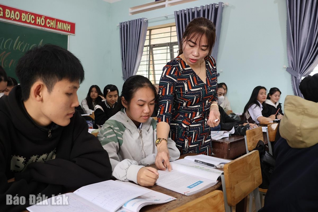 Trường THPT Buôn Đôn (huyện Buôn Đôn) có 298 học sinh khối 12, trong đó học sinh dân tộc thiểu số chiếm khoảng 50%. Qua rà soát, thống kê thực tế nhu cầu học tập của học sinh với các môn lựa chọn để thi tốt nghiệp có thể thấy đa phần học sinh chọn tổ hợp có các môn Địa lý, Lịch sử, Giáo dục kinh tế và pháp luật. Thầy Trần Vĩnh Trung, Phó Hiệu trưởng Trường THPT Buôn Đôn cho biết, căn cứ tình hình thực tế, trường tổ chức ôn tập theo tổ hợp môn thi tốt nghiệp và năng lực học tập của học sinh (khá, giỏi, trung bình, chống liệt). Qua đó đã có gần 100% học sinh ôn tập tại trường; những em có nguy cơ rớt tốt nghiệp được phụ đạo theo hướng "cầm tay chỉ việc" và được hỗ trợ 100% chi phí ôn tập. Ban Giám hiệu nhà trường bám sát kế hoạch ôn tập của trường, của từng giáo viên để giám sát, kiểm tra thường xuyên nhằm đạt hiệu quả ôn tập cao nhất có thể, phấn đấu 100% học sinh đỗ tốt nghiệp trong kỳ thi tới.