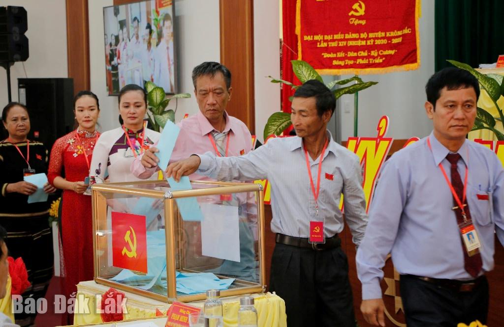Đại biểu bỏ phiếu bầu Ban Chấp hành Đảng bộ huyện Krông Pắc nhiệm kỳ 2020 - 2025. Ảnh minh họa: Lê Thành