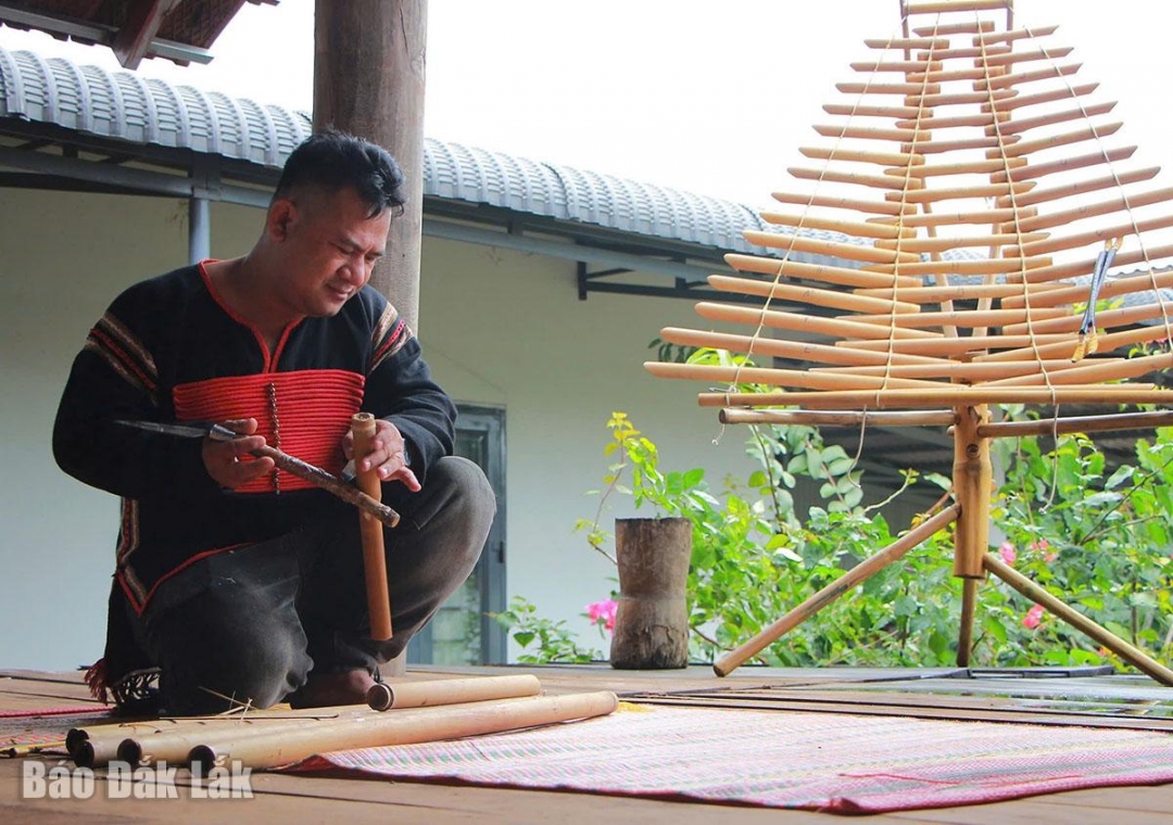 Từ tình yêu và niềm đam mê với nhạc cụ dân tộc, anh Y’Phúc Êban (SN 1984, xã Ea Tu, TP. Buôn Ma Thuột) đã tự học hỏi, chế tác nhiều loại nhạc cụ như đàn t’rưng, đing năm, chiêng tre…