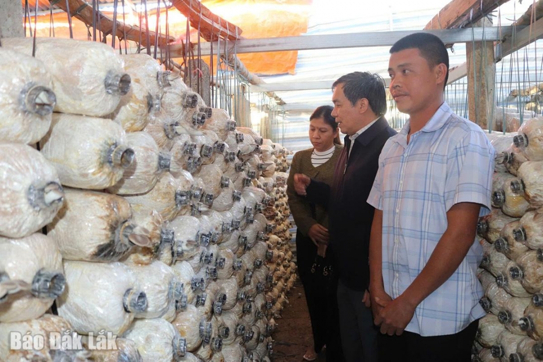 Cán bộ các phòng, ban huyện Krông Ana khảo sát các mô hình trồng nấm tại xã Quảng Điền