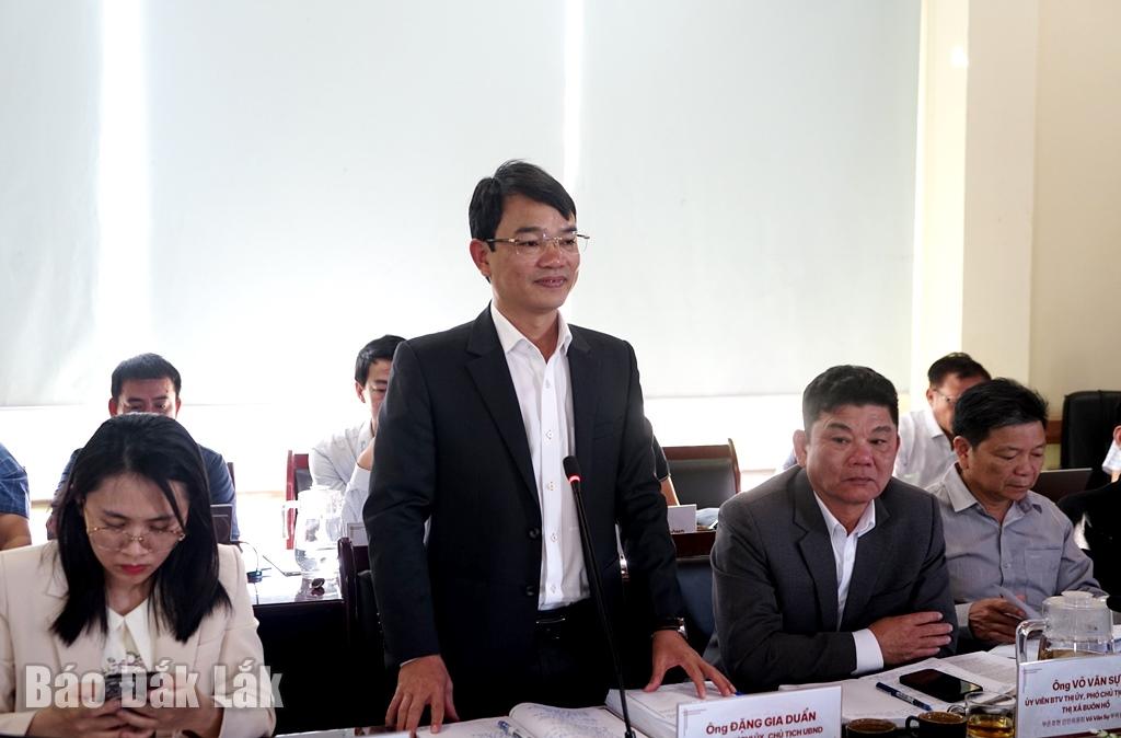 Chủ tịch UBND thị xã Buôn Hồ Đặng Gia Duẩn phát biểu tại buổi làm việc