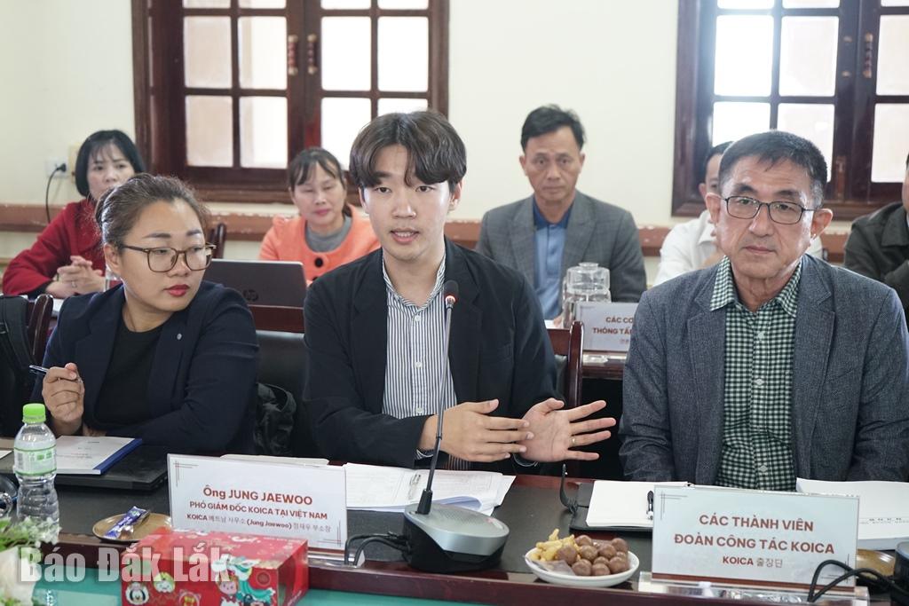 Phó giám đốc quốc gia, văn phòng KOICA Việt Nam Jung Jaewoo trao đổi tại buổi làm việc