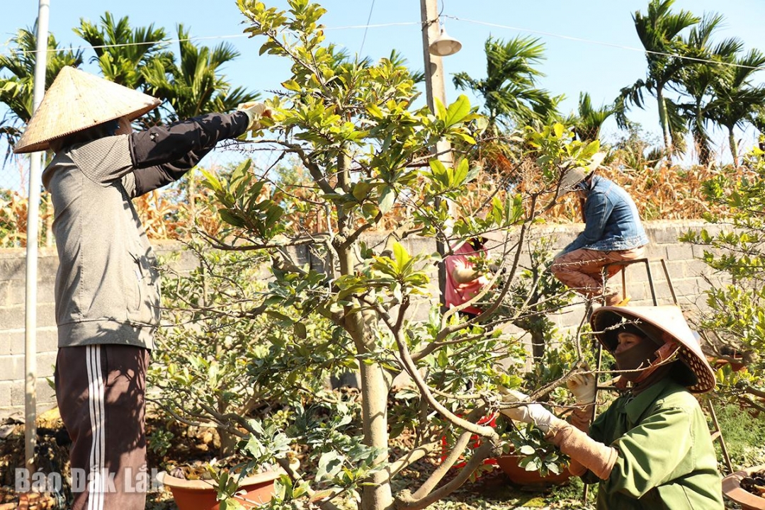 Các nhà vườn tại xã Hòa Xuân (TP. Buôn Ma Thuột) thuê nhân công lặt lá mai