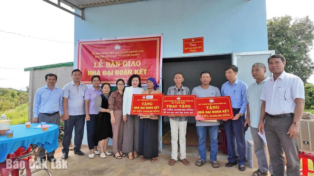 Trong năm 2024, Ủy ban MTTQ Việt Nam huyện Krông Ana đã huy động xóa 60 nhà tạm cho người khó khăn. Trong đó nguồn của tỉnh hỗ trợ 12 căn, còn lại nguồn từ huyện và các xã huy động. Hiện nay, địa phương đã xóa được 80% nhà tạm, nhà dột nát cho hộ nghèo, cận nghèo. Bên cạnh hỗ trợ xây nhà, các địa phương trên địa bàn huyện cũng đang nỗ lực hết mình giúp đỡ bà con cải thiện đời sống bằng việc tổ chức các lớp tập huấn, hướng dẫn về kỹ thuật chăm sóc cây trồng, vật nuôi; hỗ trợ nguồn giống cây trồng, vật nuôi; tư vấn, giới thiệu việc làm cho các đối tượng thuộc hộ nghèo, hộ cận nghèo, hộ mới thoát nghèo; tích cực triển khai thực hiện các mô hình, các dự án hỗ trợ sản xuất. Tất cả các hoạt động đều hướng đến mục tiêu tạo động lực giúp bà con vươn lên thoát nghèo, ổn định cuộc sống.