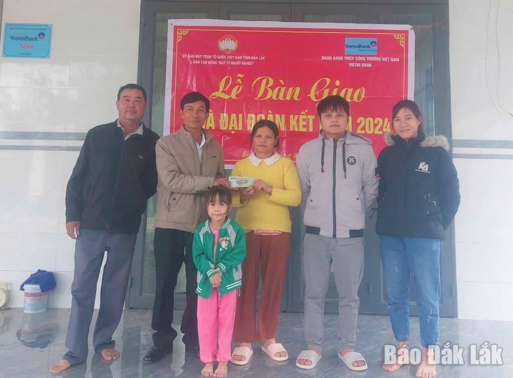 Lãnh đạo Ủy ban MTTQ Việt Nam huyện Ea Kar bàn giao nhà Đại đoàn kết cho gia đình chị Triệu Thị Tươi ở thôn 23 (xã Cư Bông, huyện Ea Kar)