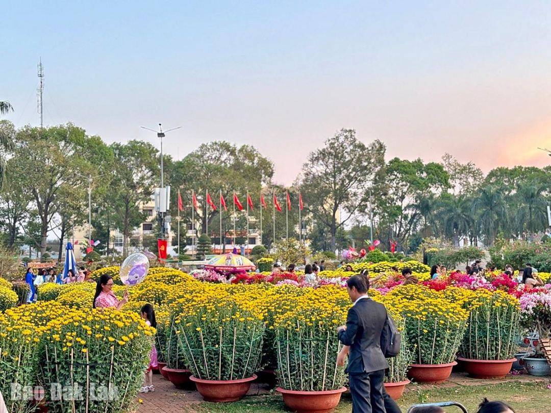 Một góc chợ hoa xuân tại Quảng trường 10-3 (TP. Buôn Ma Thuột)