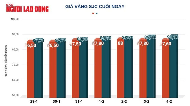 Trước đó, tại Việt Nam, do giá vàng thế giới và sức mua lên cao nên cuối ngày mùng 7 Tết (4-2) giá vàng SJC bán ra 90,1 triệu đồng/lượng. Còn vàng nhẫn có giá 89,6 triệu đồng/lượng.