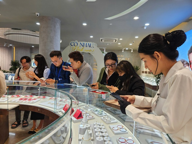 Khách mua vàng tại chi nhánh Công ty PNJ ở quận 3, sáng 6-2 (mùng 9 Tết)