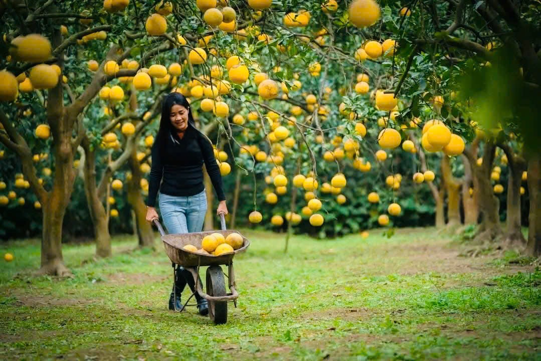 Một số vườn bưởi ở ngoại thành Hà Nội thời gian qua đã phát huy tốt mô hình du lịch trải nghiệm nông nghiệp. Ảnh: Dũng Thu.