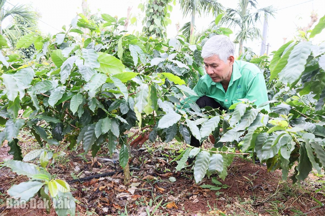 Nông dân TP. Buôn Ma Thuột ứng dụng công nghệ tưới tiết kiệm trên vườn cà phê