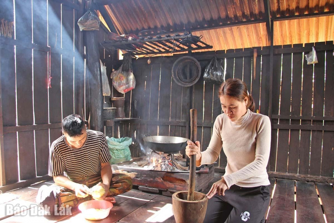 Các món ăn của đồng bào Êđê khi chế biến phần lớn đều dùng chày để giã gia vị, xào trên bếp củi hoặc nướng trên than hồng