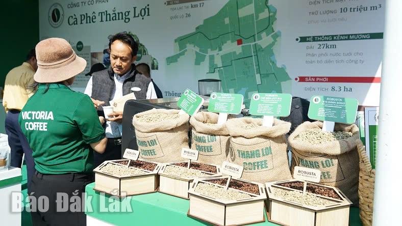 Gian hàng trưng bày, giới thiệu sản phẩm của doanh nghiệp tỉnh Đắk Lắk tham gia hội chợ triển lãm chuyên ngành cà phê tại Lễ hội cà phê Buôn Ma Thuột lần thứ 8 năm 2023. Ảnh tư liệu