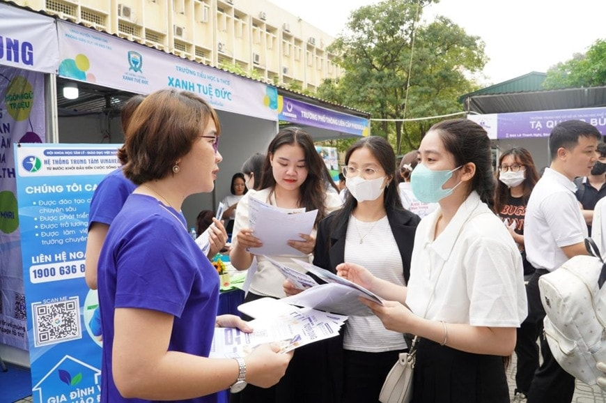 Sinh viên Trường ĐH Sư phạm Hà Nội tham dự ngày hội việc làm. Ảnh: Đào Thạnh.