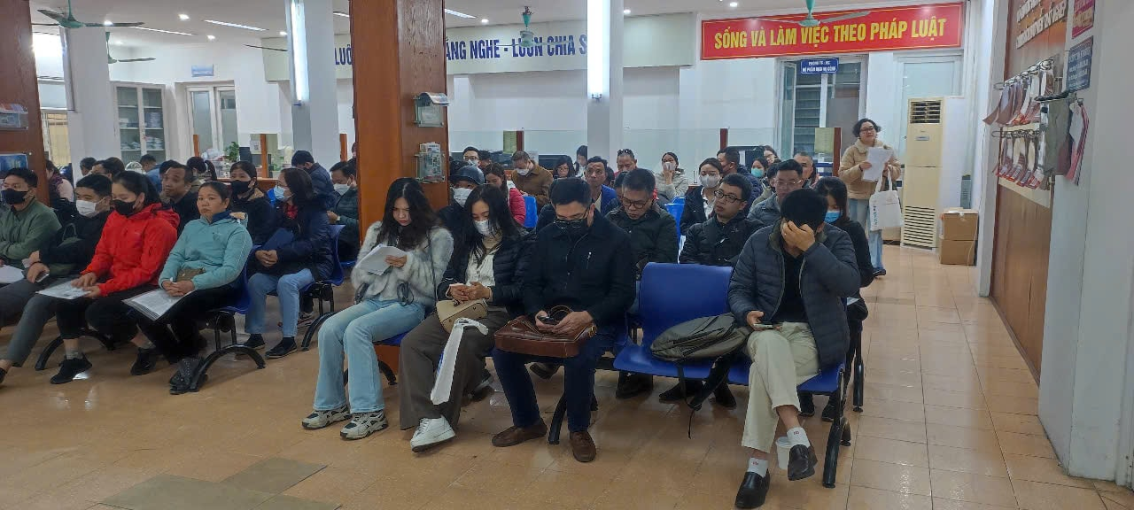 Người lao động chờ làm thủ tục về bảo hiểm thất nghiệp. Ảnh: L.H.
