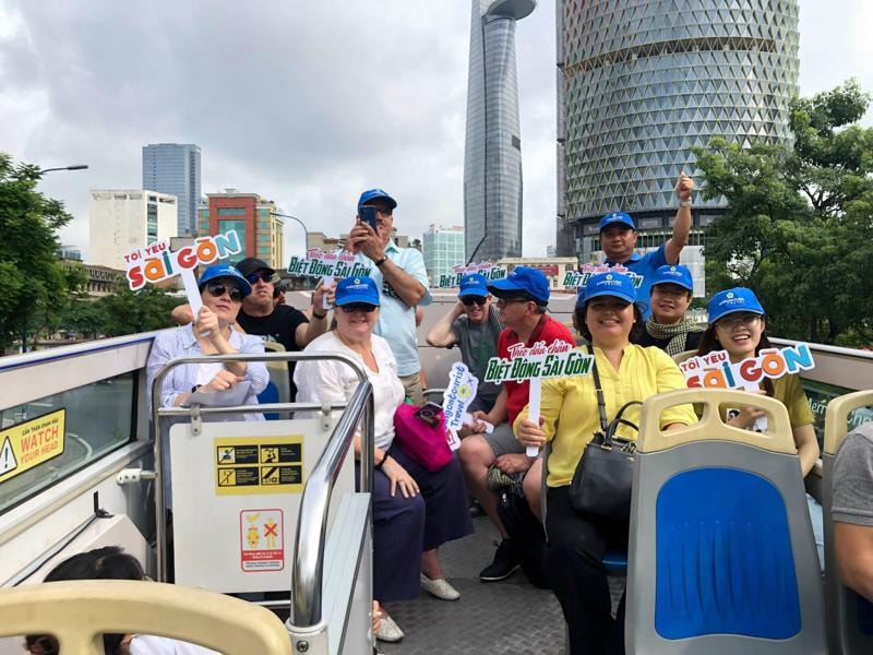 Du khách khám phá TP Hồ Chí Minh trên xe bus 2 tầng. Ảnh: S.G.