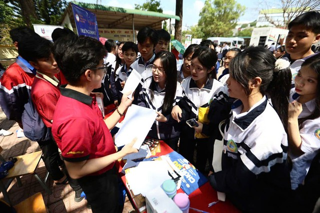 Thí sinh tìm hiểu về thông tin xét tuyển tại chương trình “Đưa trường học đến thí sinh” năm 2025. Ảnh: QUANG LIÊM