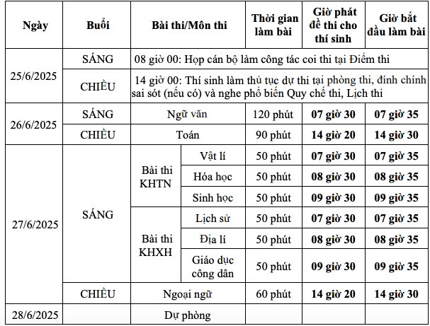 Theo đó, Kỳ thi tốt nghiệp THPT năm 2025 diễn ra trong hai ngày 26 và 27-6, với hai lịch thi dành cho các thí sinh học theo chương trình mới và cũ.