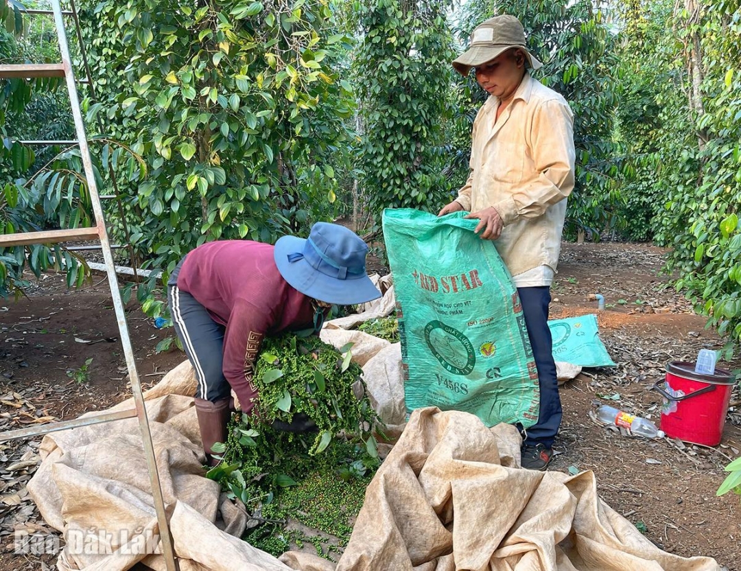 Nông dân trồng hồ tiêu trên địa huyện Cư Kuin phấn khởi vì giá tăng cao