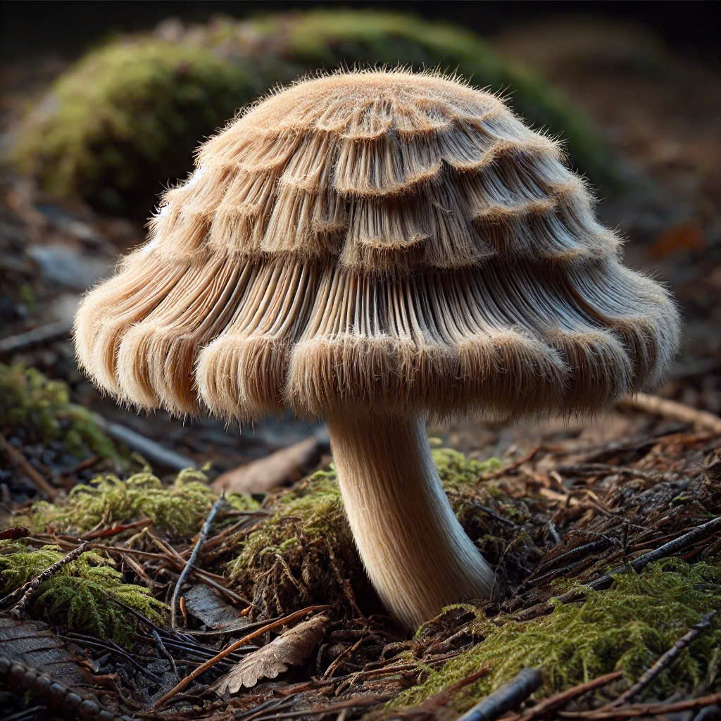 Hình ảnh mô phỏng nấm mũ khía nâu xám (Inocybe fastigiata) – một loại nấm độc khá phổ biến, dễ nhầm lẫn với nấm ăn trong tự nhiên