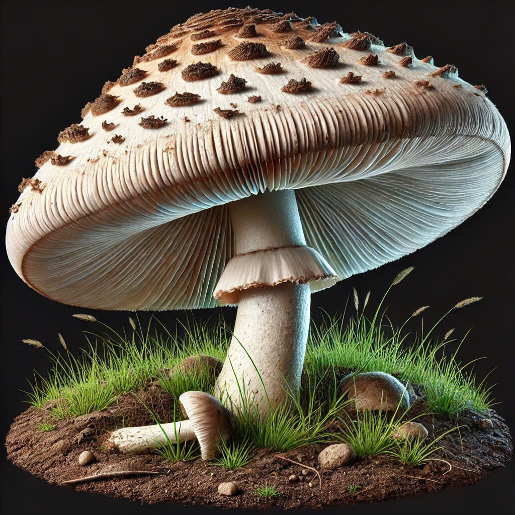 Hình ảnh mô phỏng nấm độc xám - một loại nấm nguy hiểm, dễ nhầm với nấm ăn