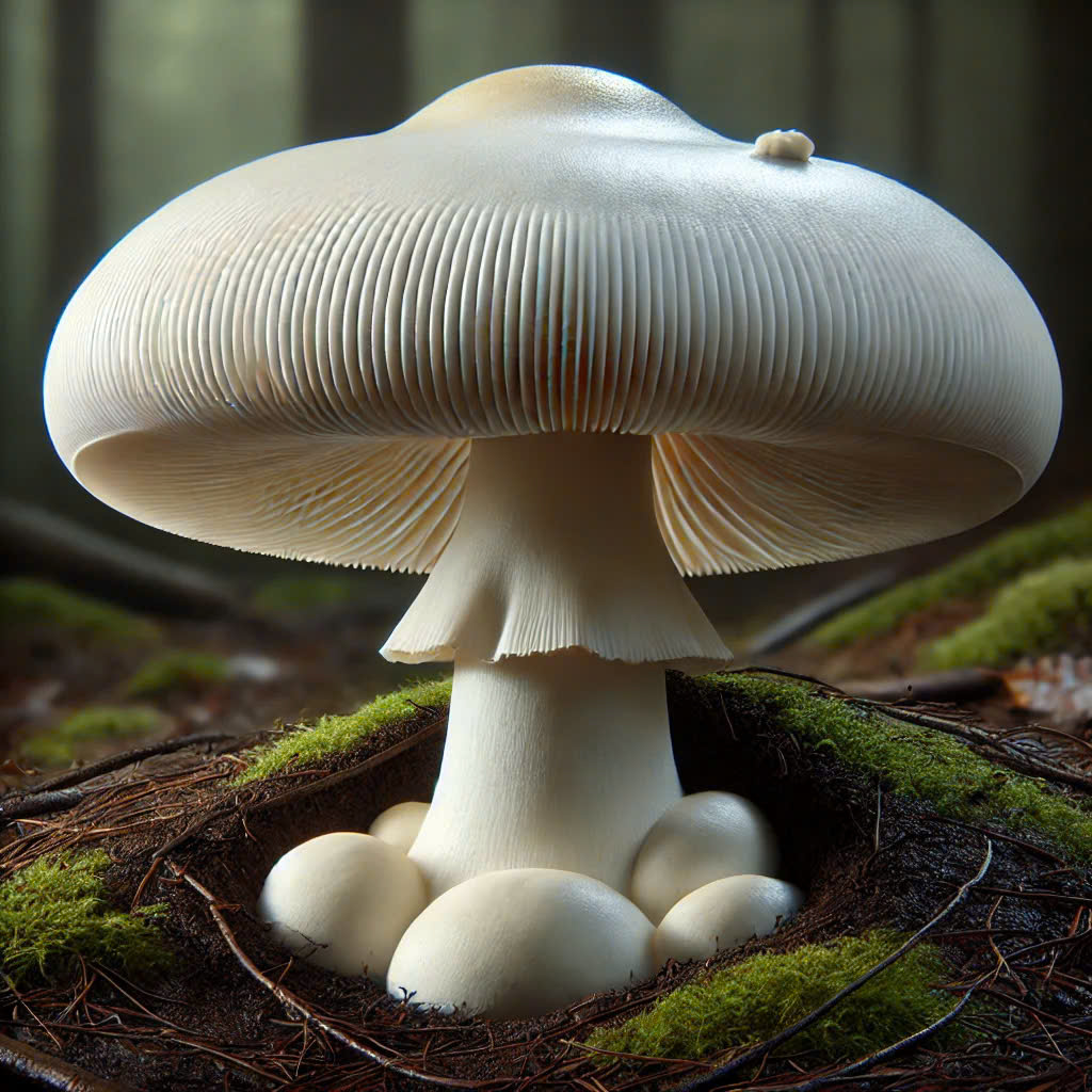 Hình ảnh mô phỏng nấm tán trắng, còn gọi là "thiên thần hủy diệt" – một trong những loại nấm cực độc