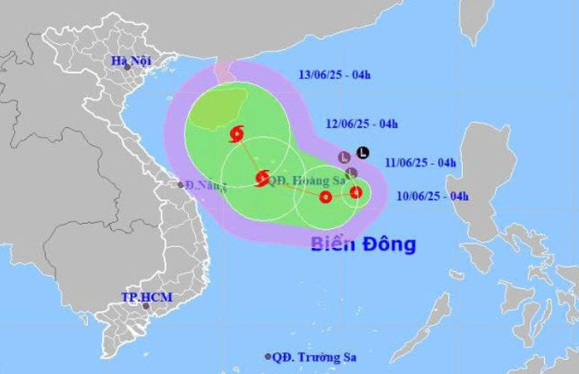 Theo Trung tâm dự báo khí tượng thủy văn quốc gia, hồi 4 giờ sáng 10-6, vị trí tâm áp thấp nhiệt đới ở vào khoảng 15,7 độ Vĩ Bắc; 115,7 độ Kinh Đông, cách quần đảo Hoàng Sa khoảng 360km về phía Đông Đông Nam.