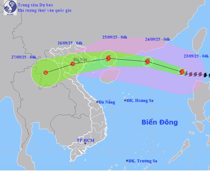 Theo Trung tâm Dự báo khí tượng thủy văn quốc gia, hồi 4 giờ ngày 23-9, tâm siêu bão Ragasa ở khoảng 19,8 độ Vĩ Bắc; 118,8 độ Kinh Đông, trên vùng biển phía Đông Bắc khu vực Bắc Biển Đông. Sức gió mạnh nhất vùng gần tâm siêu bão cấp 17 (202-221 km/giờ), giật trên cấp 17. Bão di chuyển theo hướng Tây Tây Bắc với tốc độ khoảng 20 km/giờ.