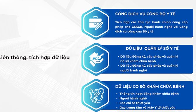 Hệ thống quản lý cơ sở khám chữa bệnh từ cấp phép, điều chỉnh thông tin đến dừng hoạt động, đồng thời liên thông, tích hợp dữ liệu với Cổng dịch vụ công của Bộ Y tế và các cơ sở dữ liệu chuyên ngành để đảm bảo đồng bộ, cập nhật thời gian thực.