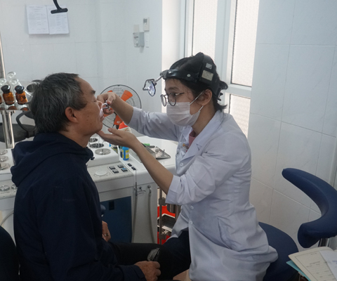 Bác sĩ Bệnh viện Đa khoa vùng Tây Nguyên thăm khám cho một trường hợp bị viêm mũi họng. Ảnh: Quang Nhật