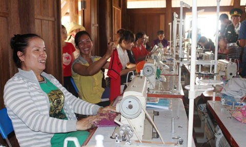 Một lớp dạy nghề may cho lao động nông thôn tại huyện Ea Súp. Ảnh: Quỳnh Anh
