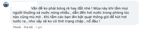 Bên cạnh đó, có người bình luận, nguyên nhân xảy ra cháy nổ cũng có thể do cách dùng, khi tắm mọi người thường xả nước nóng nhiều dẫn đến hơi nước trong phòng mù mịt, đây chính là nguyên nhân gây nổ bóng đèn sưởi ấm. Khi sử dụng bóng đèn, cần bật quạt thông gió, tránh trường hợp hơi nước không thoát được, hạn chế nguy cơ chập, cháy nổ.
