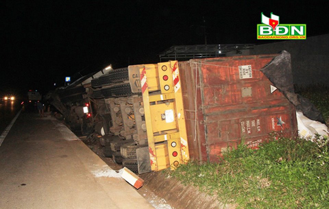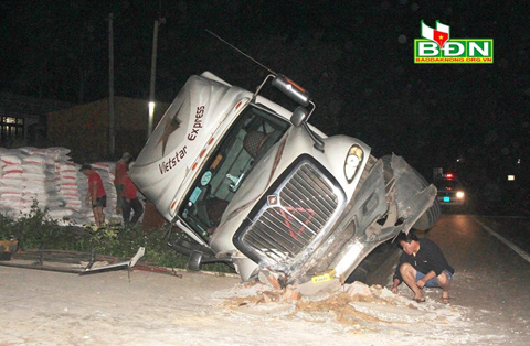 Vụ tai nạn không gây thiệt hại về người, nhưng xe đầu kéo bị hư hỏng nặng, nhiều hàng hóa trên xe tràn ra ngoài. Ngay sau khi xảy ra vụ tai nạn, lực lượng chức năng đã có mặt để điều tiết giao thông, điều tra, xử lý.