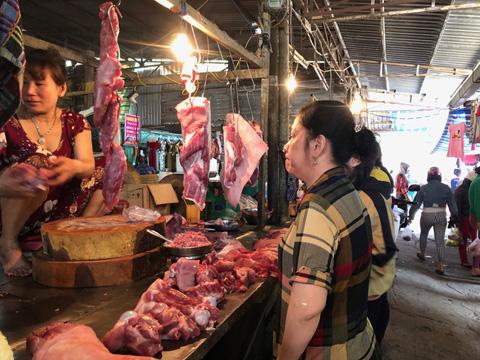 Tiểu thương các chợ lẻ chỉ nhập thịt heo vừa đủ bán vì giá cao, sức mua còn chậm