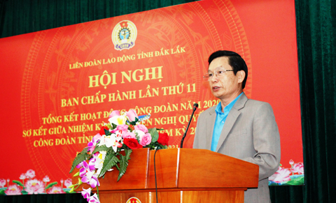 Sáng 19-1, Liên đoàn Lao động (LĐLĐ) tỉnh đã tổ chức hội nghị Ban chấp hành lần thứ 11 (mở rộng) khóa X, nhiệm kỳ 2018-2023 nhằm tổng kết hoạt động công đoàn năm 2020 và sơ kết giữa nhiệm kỳ thực hiện Nghị quyết Đại hội Công đoàn tỉnh lần thứ X.