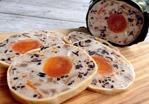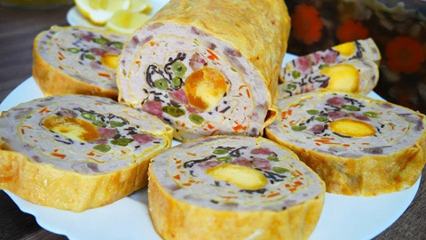Món ăn giò hoa ngũ sắc có đầy đủ hương vị của heo, gà, các loại rau củ và vị bùi bùi của trứng muối sẽ là món ăn tăng thêm hương vị cho ngày Tết Nguyên đán.