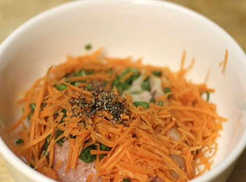 Cà rốt rửa sạch, gọt vỏ, bào nhỏ thành các sợi ngắn