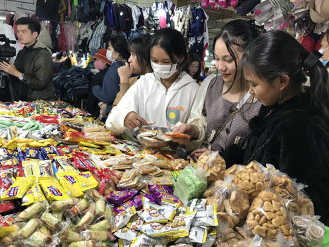 Với mặt hàng bánh, mứt, đồ khô, giá cả không tăng so với mọi năm. Chợ Tết bày bán đầy đủ, phong phú các mặt hàng bánh kẹo, mứt, hạt dưa, hạt bí, mực khô, bò khô… Riêng mứt Tết có đến 30 loại, chủ yếu có giá từ 60.000 - 80.000 đồng/kg. Hiện lượng khách lẻ mua mặt hàng này chưa nhiều, chủ yếu là các đầu mối nhập hàng để vận chuyển đi các huyện trong tỉnh phục vụ nhu cầu mua sắm Tết.