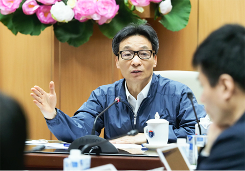 Phó Thủ tướng Vũ Đức Đam trong cuộc họp với Bộ Y tế và tỉnh Hải Dương, Quảng Ninh. (Ảnh: Tuấn Anh).