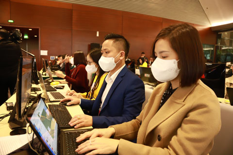 Phóng viên tác nghiệp tại Đại hội XIII thực hiện nghiêm túc công tác phòng chống dịch Covid-19