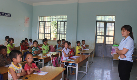 Một số khoản viện trợ không hoàn lại tập trung vào lĩnh vực giáo dục ở địa bàn vùng sâu, vùng xa. (Trong ảnh: Một tiết học của cô trò Trường Tiểu học Y Ngông Niê Kđăm, xã Đắk Nuê, huyện Lắk)