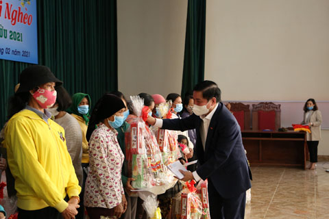 Tại điểm đến thăm, chúc Tết, Bí thư Tỉnh ủy Bùi Văn Cường đã thông tin nhanh về những kết quả nổi bật trên các lĩnh vực kinh tế - xã hội, an ninh - quốc phòng, công tác phòng, chống dịch Covid-19 của đất nước, của tỉnh; kết quả Đại hội đại biểu toàn quốc lần thứ XIII của Đảng; những nghị quyết được thông qua nhằm xoá đói giảm nghèo phát triển kinh tế của đất nước. Đồng thời, ân cần thăm hỏi, động viên và trao 100 suất quà (mỗi suất trị giá 1 triệu đồng) tặng các hộ có hoàn cảnh khó khăn, gia đình chính sách trên địa bàn huyện.