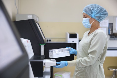 Xét nghiệm SARS-CoV-2 tại Bệnh viện Bệnh Nhiệt đới TP HCM - Ảnh: HOÀNG TRIỀU