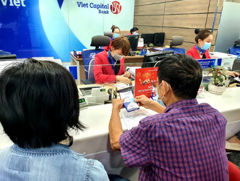 Tại NH TMCP Bản Việt (trụ sở quận 3, TP HCM), khách tấp nập đến giao dịch, trong đó chủ yếu là gửi tiết kiệm. NH này đang có chương trình khuyến mại là khách đến giao dịch trong 3 ngày đầu tiên của năm mới, từ mùng 6 - 8 Tết sẽ lì xì may mắn dịp đầu năm cho khách hàng. Cô Nguyễn Thị Út (ngụ quận 3), đang gửi tiết kiệm tại NH này, cho biết vừa nhận được bao lì xì may mắn sau khi gửi tiết kiệm.